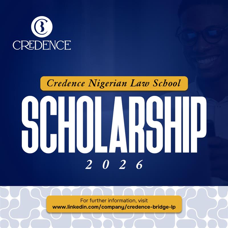 Credence is pleased to announce the 2026 Nigerian Law School Scholarship, an initiative designed to support outstanding and financially disadvantaged Nigerian law graduates who have demonstrated academic excellence, integrity, and a strong commitment to the legal profession.